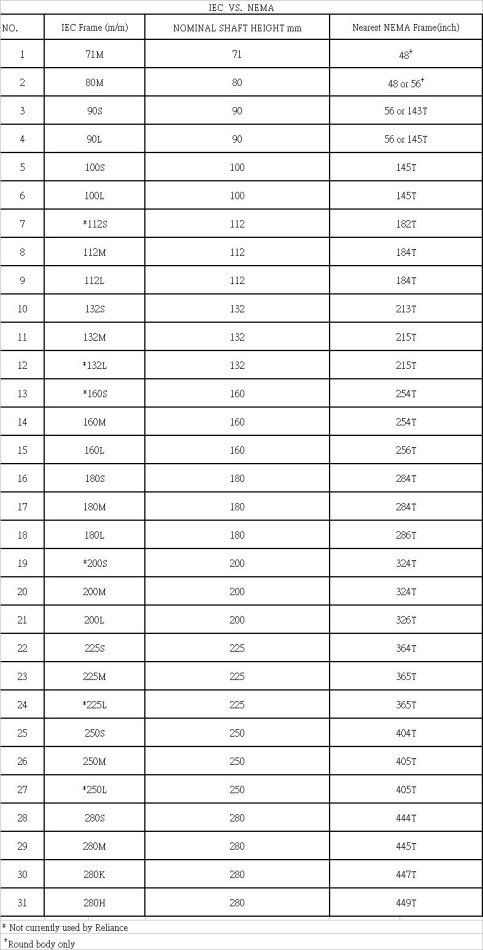 IEC 電機(jī)和NEMA電機(jī)中心高對照表